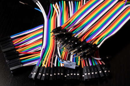 Colorful wires used in microcontroller systems.