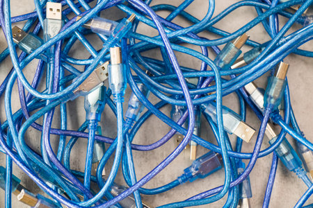 Large group of blue cables, high angle view