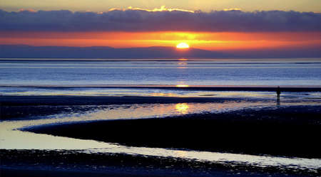 Sunset at low tide on the Loughor Estuary, Penclawdd, North Gower, Swansea, UK