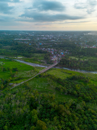 indonesia beauty landscape paddy fields in north bengkulu natural beautiful morning view from Indonesia of mountains and tropical forest