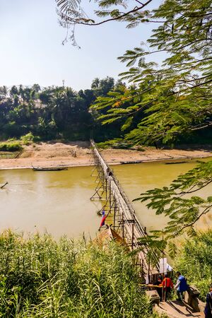 View of the Nam Khan river, Louangphabang, Laos. Copy space for text