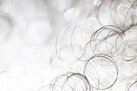 Extreme macro of polyester stable fiber on blue background. Selective focus, shallow depth of field. Abstract dreamy background