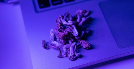 Close up Magic shroom. Psychedelic drug. Dry Psilocybe cubensis. Albino A strain. Psilocybin Mushroom. Psilocybin mushroom.