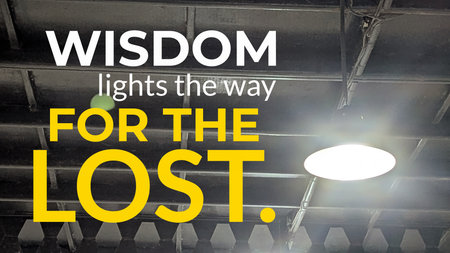 Wisdom lights the way for the lost. An illuminated lamp shines brightly on a dark, industrial ceiling, symbolizing guidance. This quote highlights knowledge providing direction, hope.