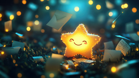 A striking golden star surrounded by shimmering glitter creates a magical atmosphere. Perfect for celebrating achievements, holidays, and festive events.