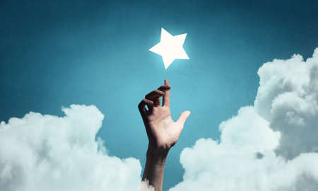 A hand reaching out to touch a glowing star, symbolizing dreams and aspirations.