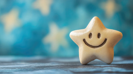 Smiling star-shaped object on blue blurry background