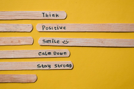stick of ice cream with the words Think Positive, Smile, calm dowm, Stay strong. Motivational quotes, optimism, positive words. Isolated on background