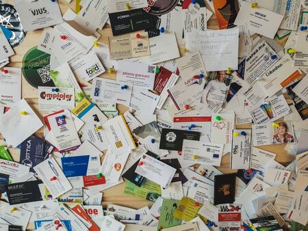 TALLINN, ESTONIA - MAY 2018 - A large number of business cards a