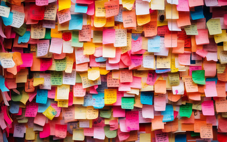 colorful post it notes on the wall, note paper on wall