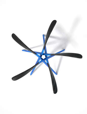 A circular array of blue and black ice hockey sticks on an isolated white background - 3D render