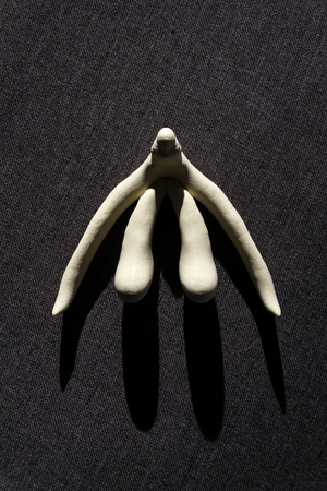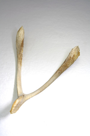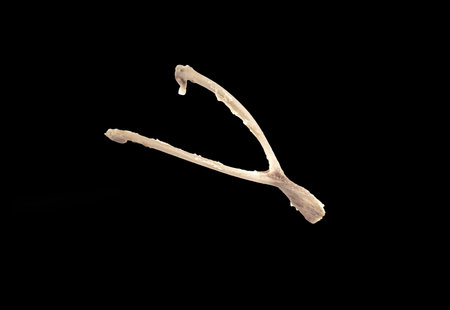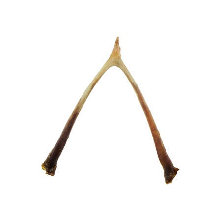 Wish bird bone luck talisman. Vintage vector hatching monochrome black illustration. Isolated on white background. Hand drawn ink design