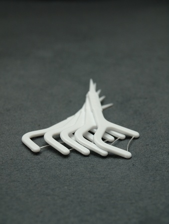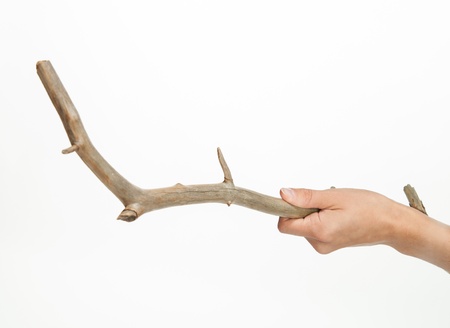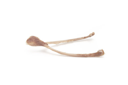 A bone is shown on a white background. The bone is thin and has a white color. The bone is laying on the ground.