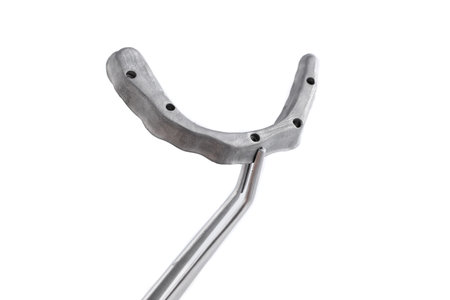 Close-Up of Titanium Surgical Implant for Jaw Reconstruction. Maxillofacial Medical Device on White Background for Healthcare, Dental, or Orthopedic Use