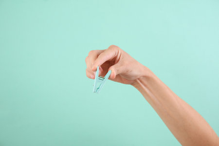 male hand on mint background showing the symbol of victory or number two or sexual insult