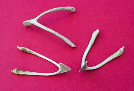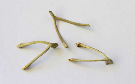 A bone is shown on a white background. The bone is thin and has a white color. The bone is laying on the ground.