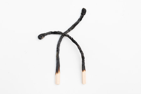 Two matches with distinct colored heads meet symmetrically against a soft blue backdrop, symbolizing contrast and the potential for ignition, perfect for creative uses.