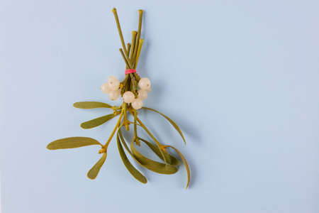 Bunch of mistletoe with white berries and green leaves. Christmas decoration.