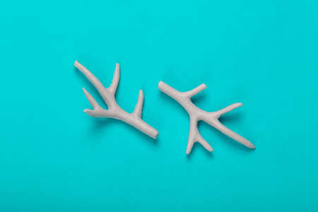 minimal layout. Deer antlers on turquoise background. top view. concept art