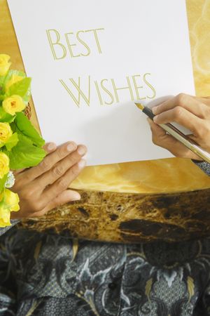 Woman writes wishlist. Handwriting my wishlist on a notepad.