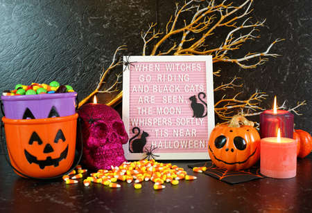 Halloween mantel table centerpiece with Halloween poem letter board.