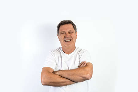 Portrait of a handsome man in white shirt with crossed arms
