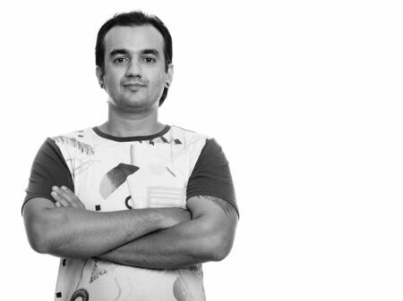 Studio shot of Persian man with arms crossed