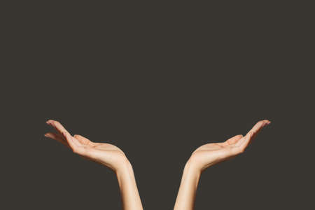 Female hands on black background
