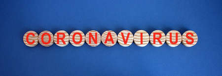 COVID-19 Pandemic Coronavirus concept. Wooden circles with the inscription coronavirus.