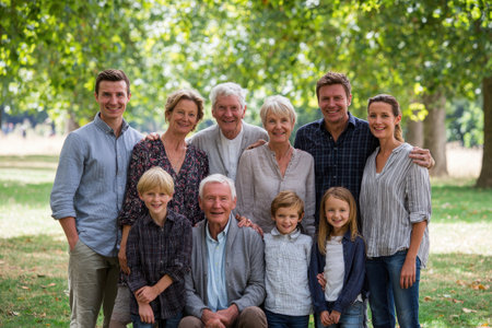A multi-generational family enjoying quality time together outdoors in a park