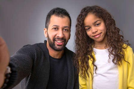 Black father taking selfies with his daughter