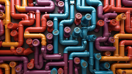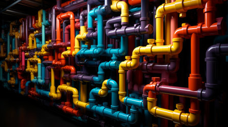 Group of colorful pipes connected to each. Generative AI.