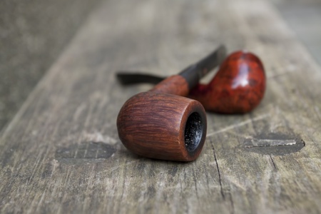 Two tobacco pipes on the wooden bench