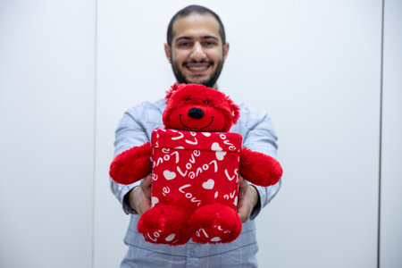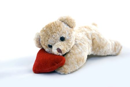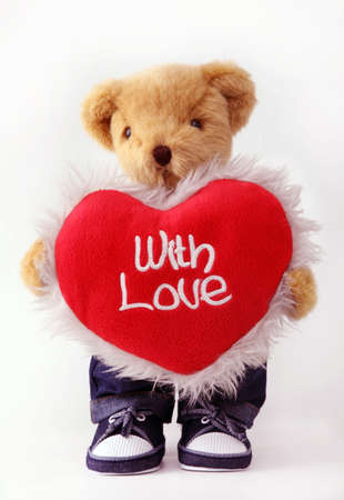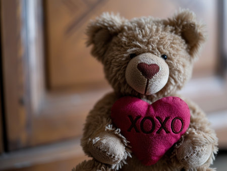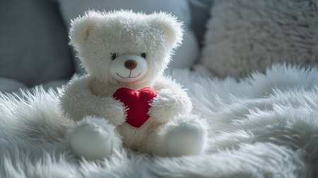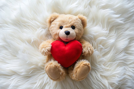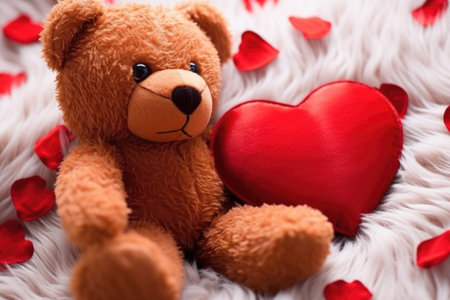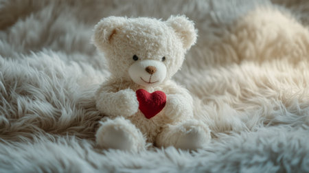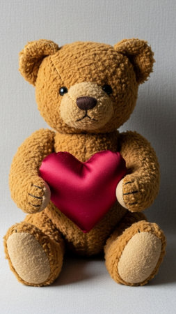 A heartwarming image of a fluffy teddy bear gently holding a red heart. A perfect symbol of love and affection.