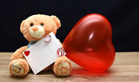 Teddy bear and white envelope with a heart. Valentine's Day gift