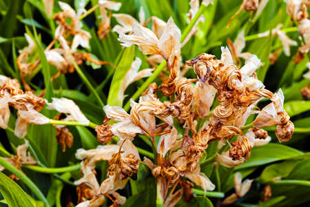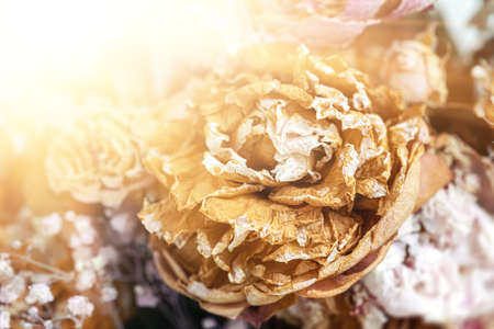 Dry bouquet. Close-up image of dried flowers in a bouquet. Life and death concept. Withered flower background