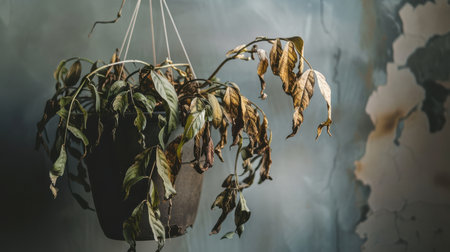 Forgotten Beauty: Neglected House Plant with Dry Leaves