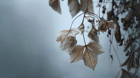 Dry autumn leaves on a minimalist white background, reflecting the beauty of decay and seasonal change perfect for nature and seasonal themes