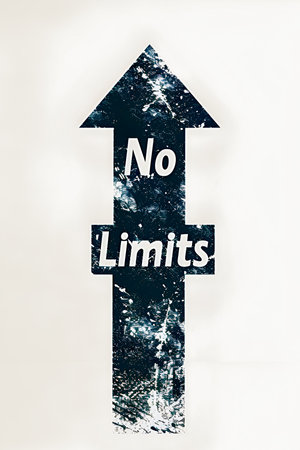 Black arrow up in light beige background with text No Limits. Motivational phrarse