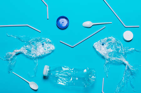 concept of pollution of nature, ocean, sea, rivers. Plastic bags, bottles, tubes