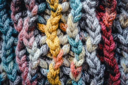 Close-up of colorful textile weave with intricate twisted yarn patterns. That the image is generated using AI.