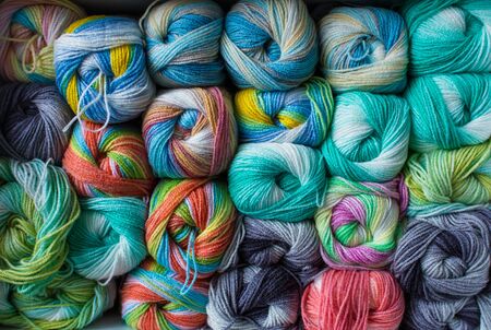 Colorful wool yarn as a background. Close-up image.