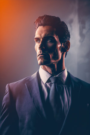Confident businessman in suit exudes elegance, looking at camera generated by artificial intelligence