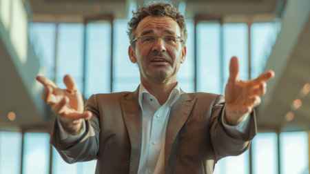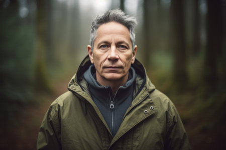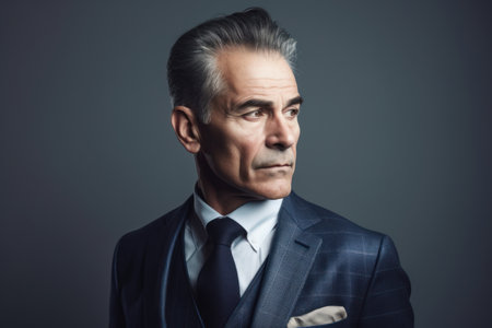 Confident Fifty-Year-Old Businessman with Gray Hair in Professional Suit, Exuding Experience