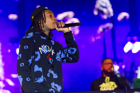 PANENSKY TYNEC, CZECH REPUBLIC - JUNE 28, 2018: American rapper Wiz Khalifa during his performance at Aerodrome festival in Panensky Tynec, Czech Republic, June 28, 2018.