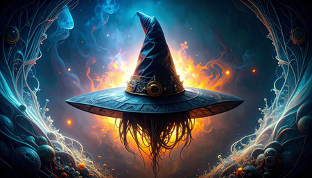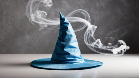 This image features a stunning magician's hat with shimmering sparkles and colorful smoke on a mystical blue background, evoking a sense of magic and wonder.