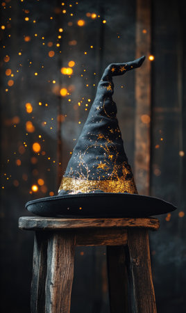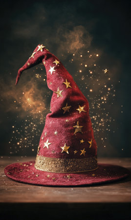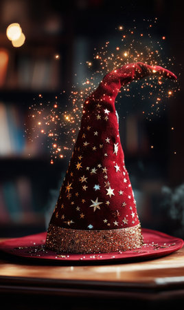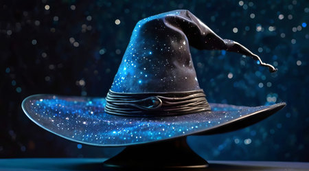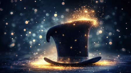 A classic magician hat with shimmering sparks and stars, evoking wonder against a midnight sky.
