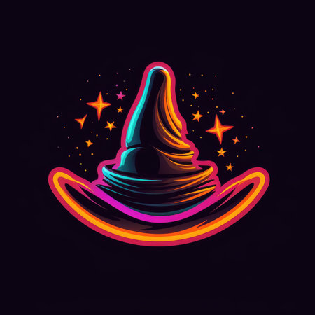 witch hat neon icon logo halloween cute scary bright illustration sticker tattoo isolated vector wall art poster