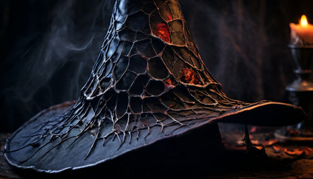 This collection of high-resolution images captures the essence of Halloween, featuring classic symbols like witches' hats and broomsticks Perfect for festive themes and haunted atmospheres, these images bring spooky charm and eerie beauty to any project AI Generative