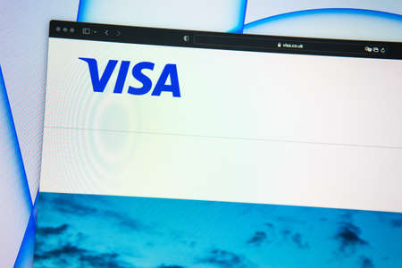 Miami / USA - 11.28.2019: Visa company website homepage. Close up of Visa logo. Can be used as illustrative for news media or other websites, good for business or marketing concept.